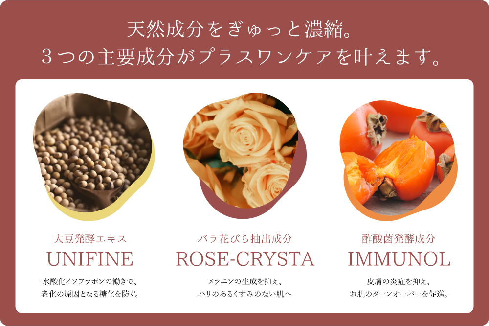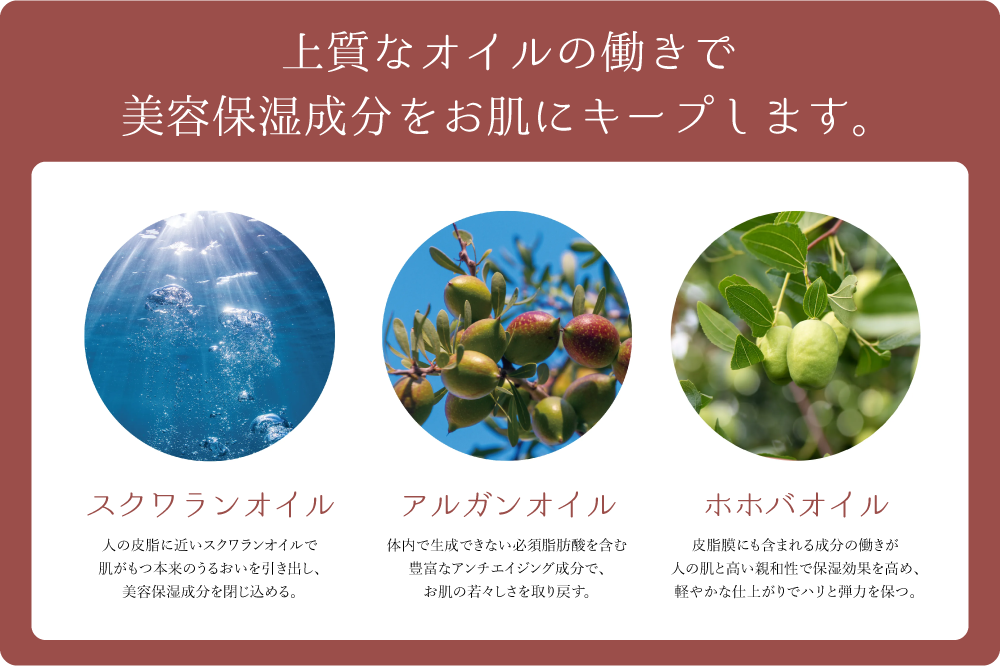 ベタつかずお肌にすっとなじむとろみのあるテクスチャーが、うるおいを保ち、年齢を感じさせないみずみずしい肌へと導きます。